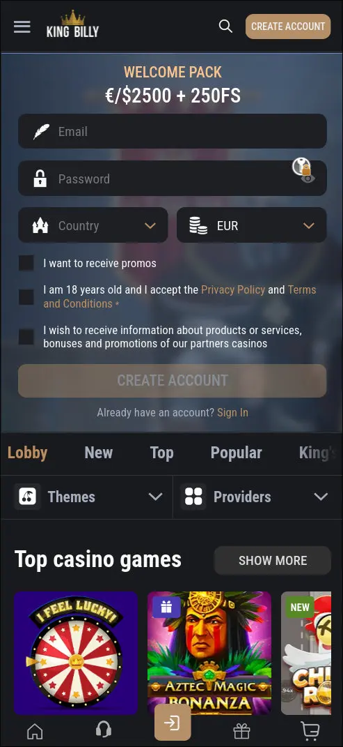 If King Billy (Billy Casino) runs a no-deposit free spins promo, it’s usually claimed in one of two places: during registration or inside your cashier / bonuses area after you create an account.